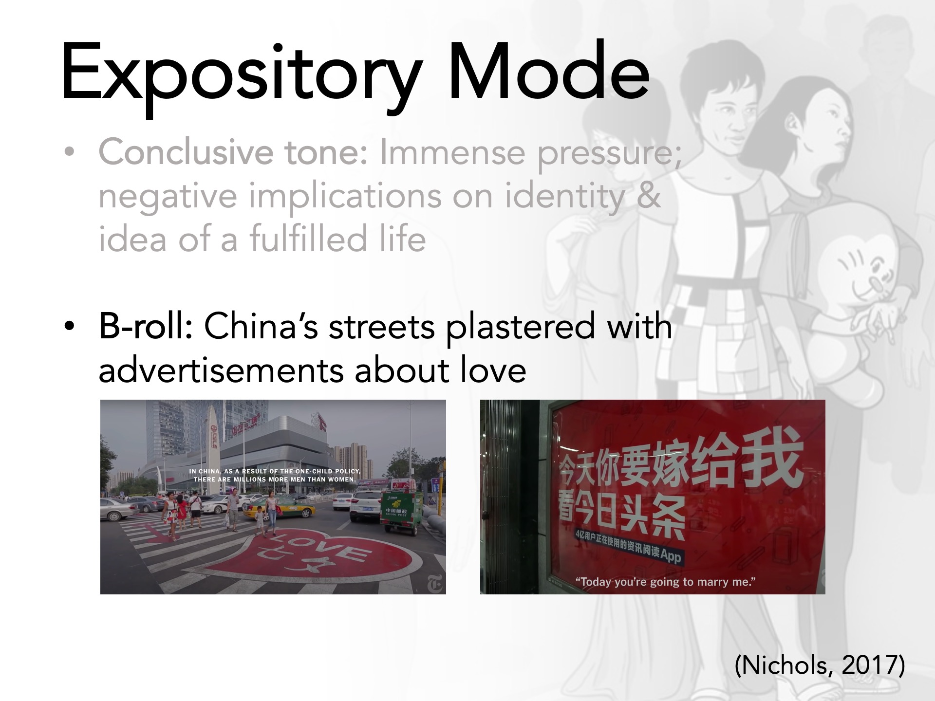 This is a selection of slides taken from an analytical university presentation for a documentary.