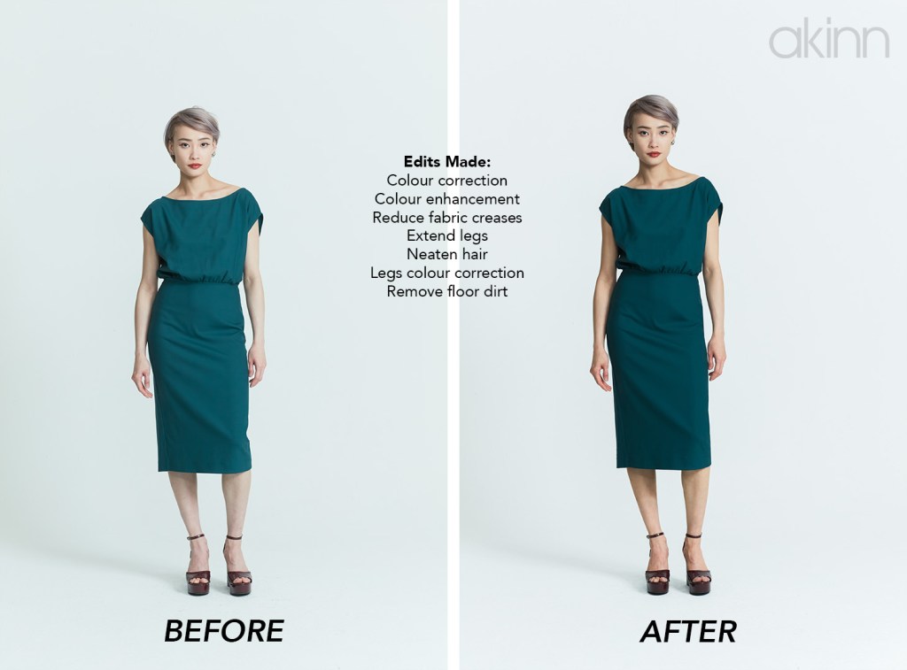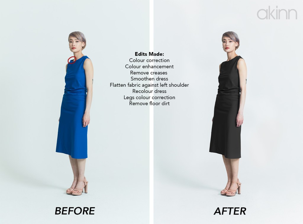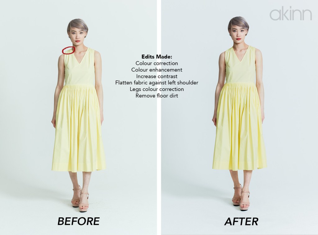 This is a freelance project that I took on remotely for Singapore fashion brand, Akinn. My tasks ranged from minor to major editing on Lightroom and Photoshop, including colour correction and enhancement, removing elements like floor dirt and fabric creases, recolouring apparel, and extending legs. Below are some before and after examples.