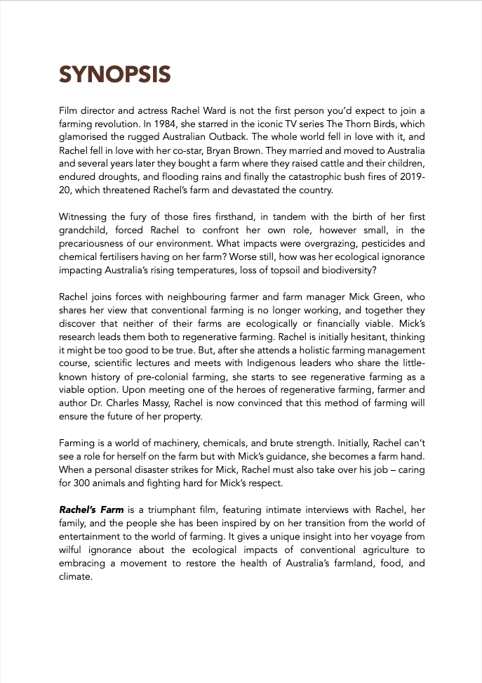 Rachel’s Farm (2023) Info Pack for QnA Preview Screenings with NIXCO